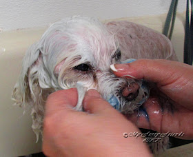 We put him in his kennel, on a big towel to rest while I finished the Bichon.