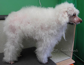 The fact that he is a white Poodle also increases the chance of clipper irritation.